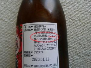 私が最近飲んでいるりんご酢にもクエン酸が入っています。
