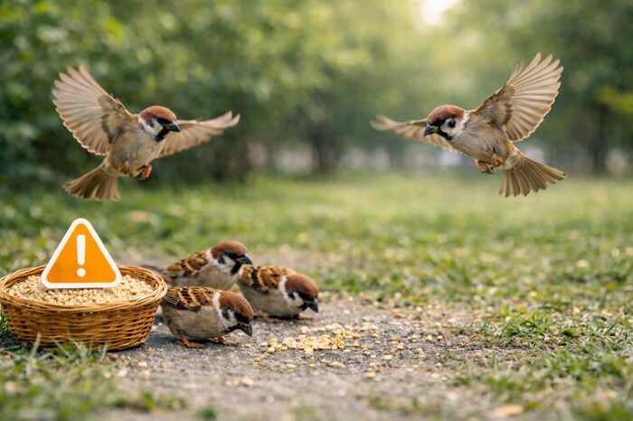 また、同じ場所に毎日大量の餌が置かれると、スズメが集まりすぎる状況を作ってしまうこともあります。