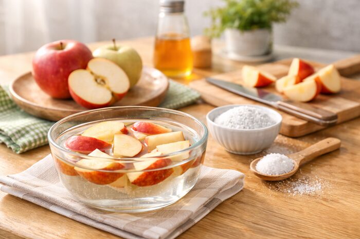 塩水につけることで、酸化の進行をゆるやかにしたり、リンゴの表面を一時的に保護したりする働きが期待できます。