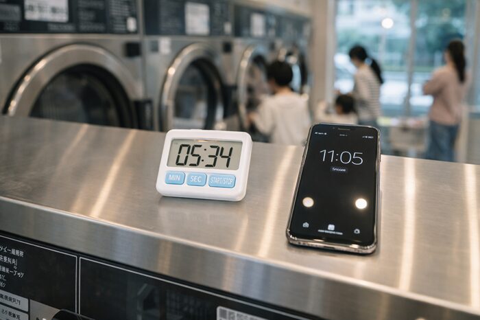 コインランドリーを使っていると、「この待ち時間、ずっとここにいなきゃダメ?」「少しだけ離れてもいいのかな…」と迷うこと、ありますよね。