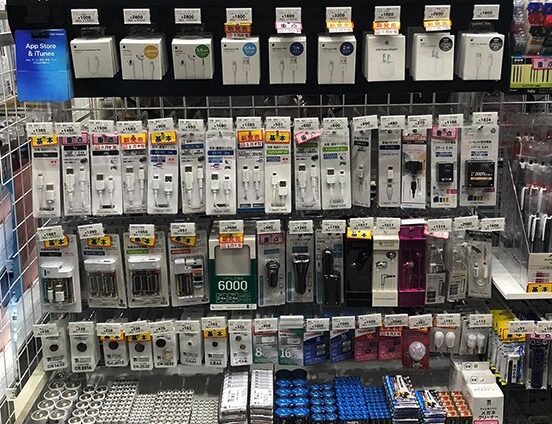 イヤホンやケーブル、モバイルバッテリーなどが複数並んでいる店舗ほど、PD対応充電器が置かれている可能性も高くなります。