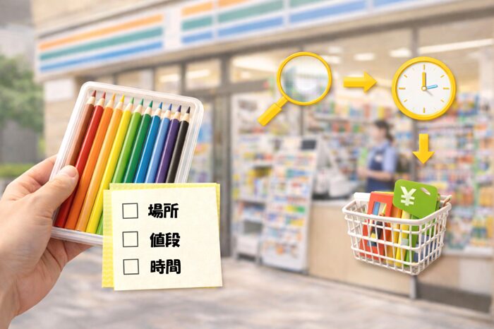 今すぐ色鉛筆が必要な場合は、まず最寄りのコンビニを確認し、見つからなければ100円ショップへ向かう、という流れが現実的です。