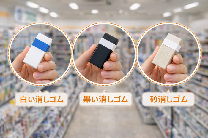 コンビニで見かける消しゴムのタイプを整理します。