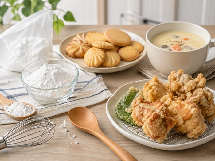 小麦粉や片栗粉と混ぜて使うレシピもあり、衣のサクッと感を調整したい時に便利です。